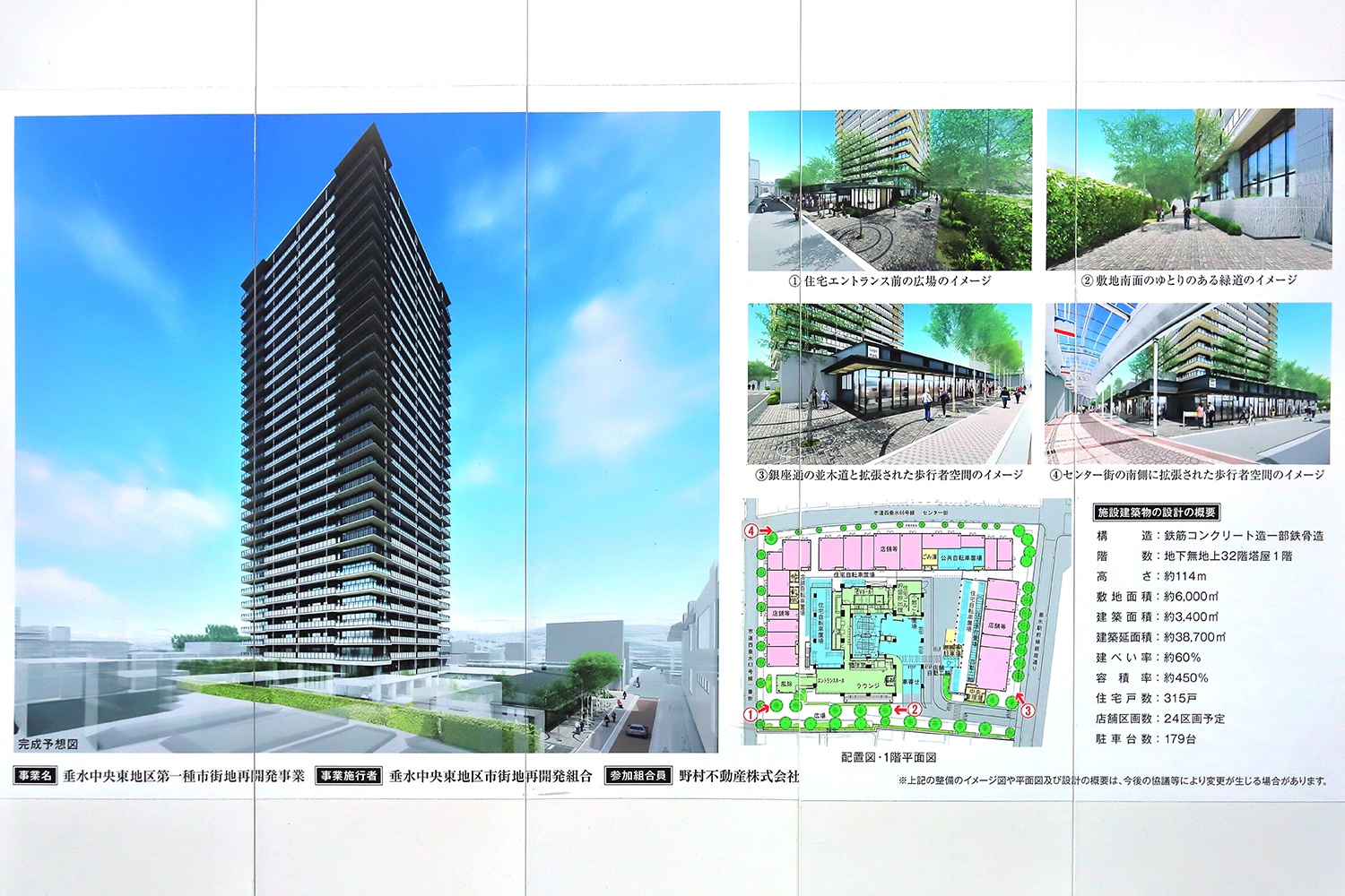 再開発ビルの概要が掲示してありました。写真クリックで拡大画像を表示。