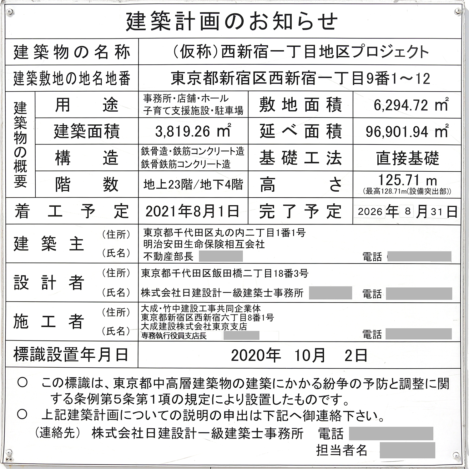 「(仮称)明治安田生命新宿ビル」の建築計画のお知らせ。前回撮影時と内容は同じです。写真クリックで拡大画像を表示。