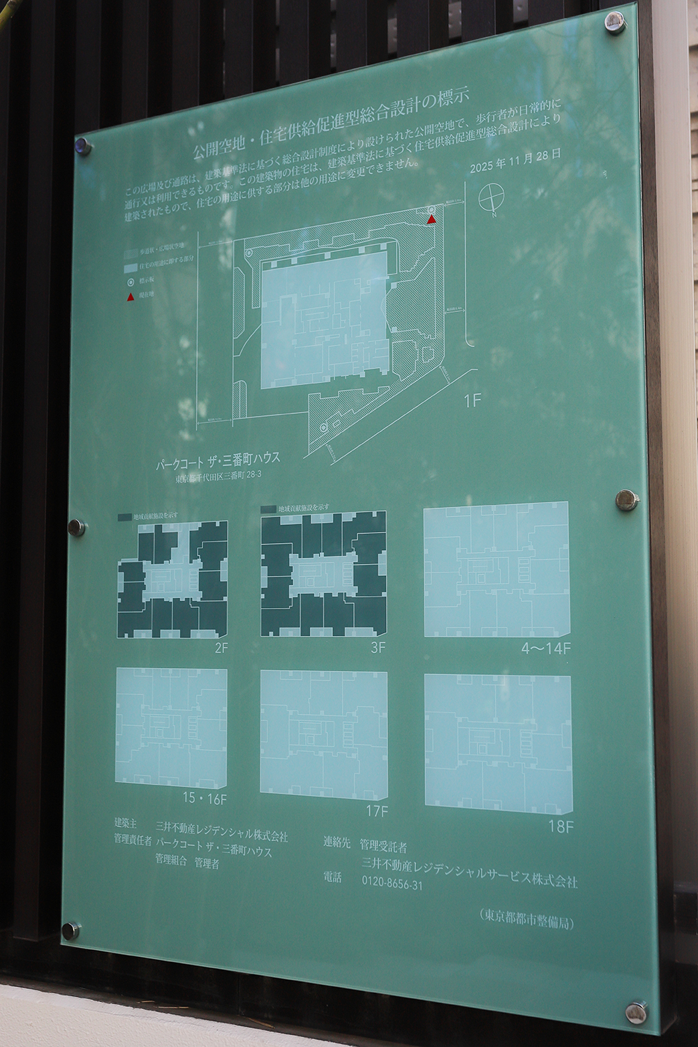 「公開空地・住宅供給促進型総合設計の標示」です。写真クリックで拡大画像を表示。