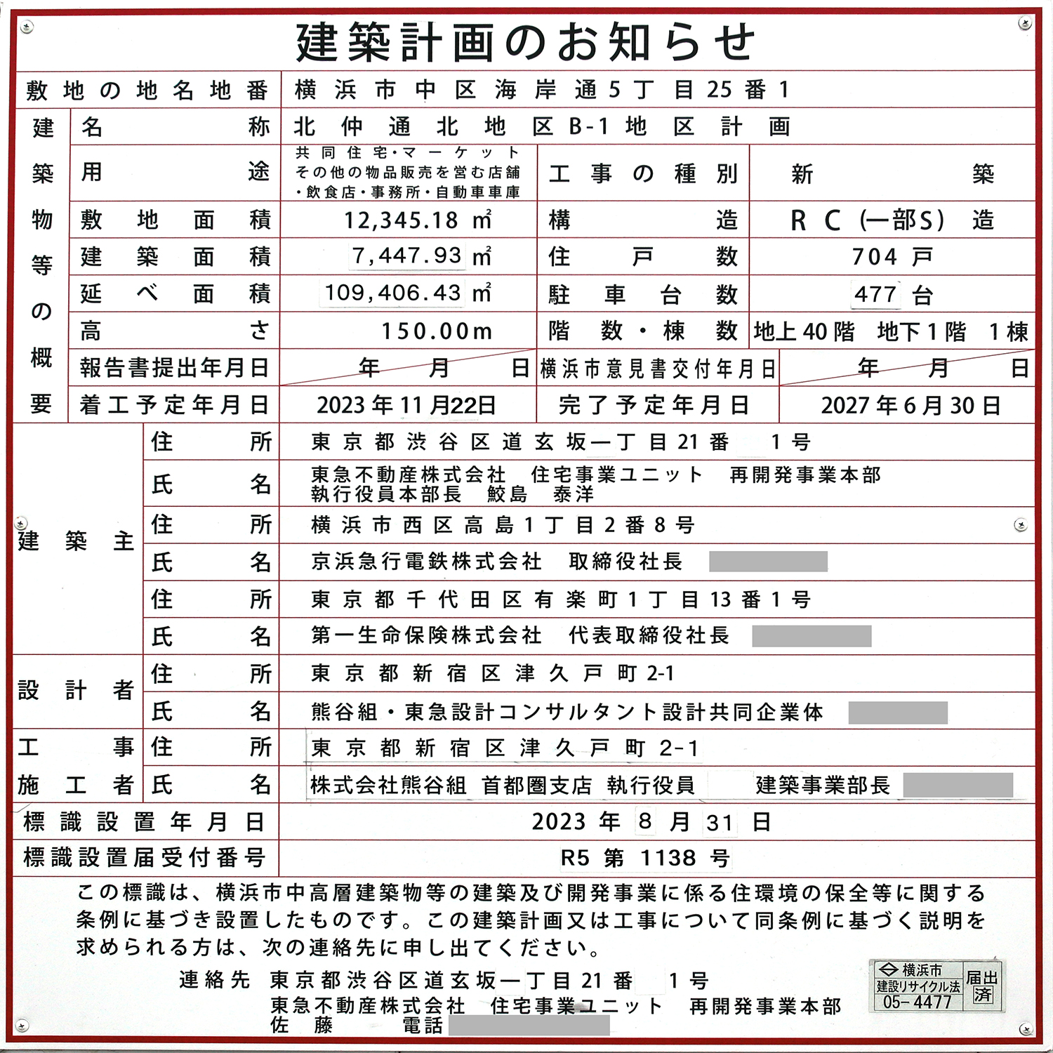 | 事業名 | (仮称)北仲通北地区B-1地区計画新築工事 |