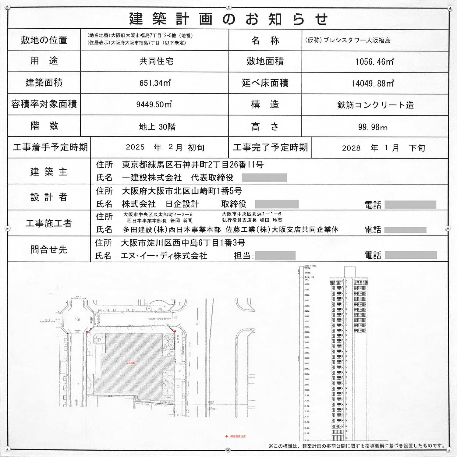 | 計画名 | (仮称)プレシスタワー大阪福島 |