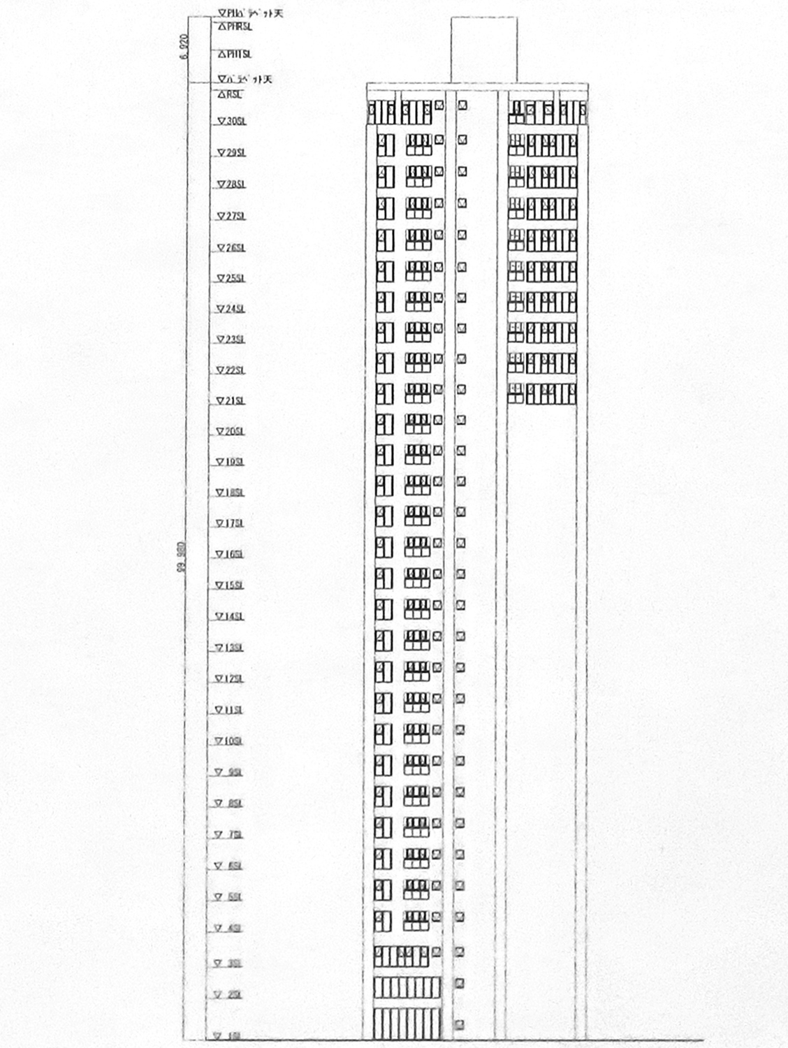 建築基準法上の高さが99.98m、塔屋も含めた高さが106.90mです。