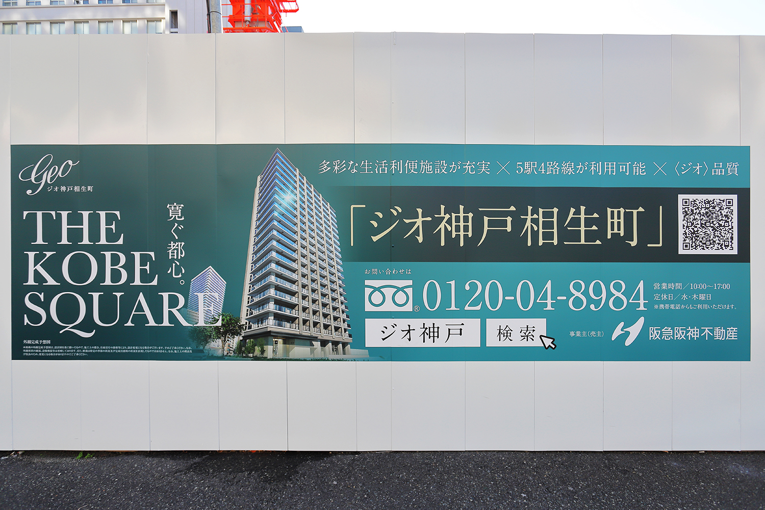 ジオ神戸相生町は、阪急阪神不動産が神戸市中央区相生町1丁目において分譲する地上20階、高さ59.96m、総戸数108戸の高層マンションです。 設計は東急設計コンサルタント(意匠・設備)と不二建設(構造)、施工は不二建設。 2027年11月上旬に竣工し、同12月下旬に入居を開始する予定です。