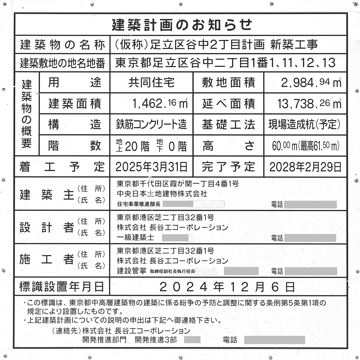 | 計画名 | (仮称)足立区谷中2丁目計画新築工事 |