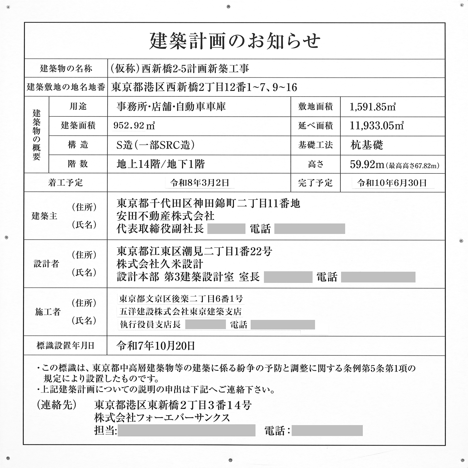 | 名 称 | (仮称)西新橋2-5計画新築工事 |