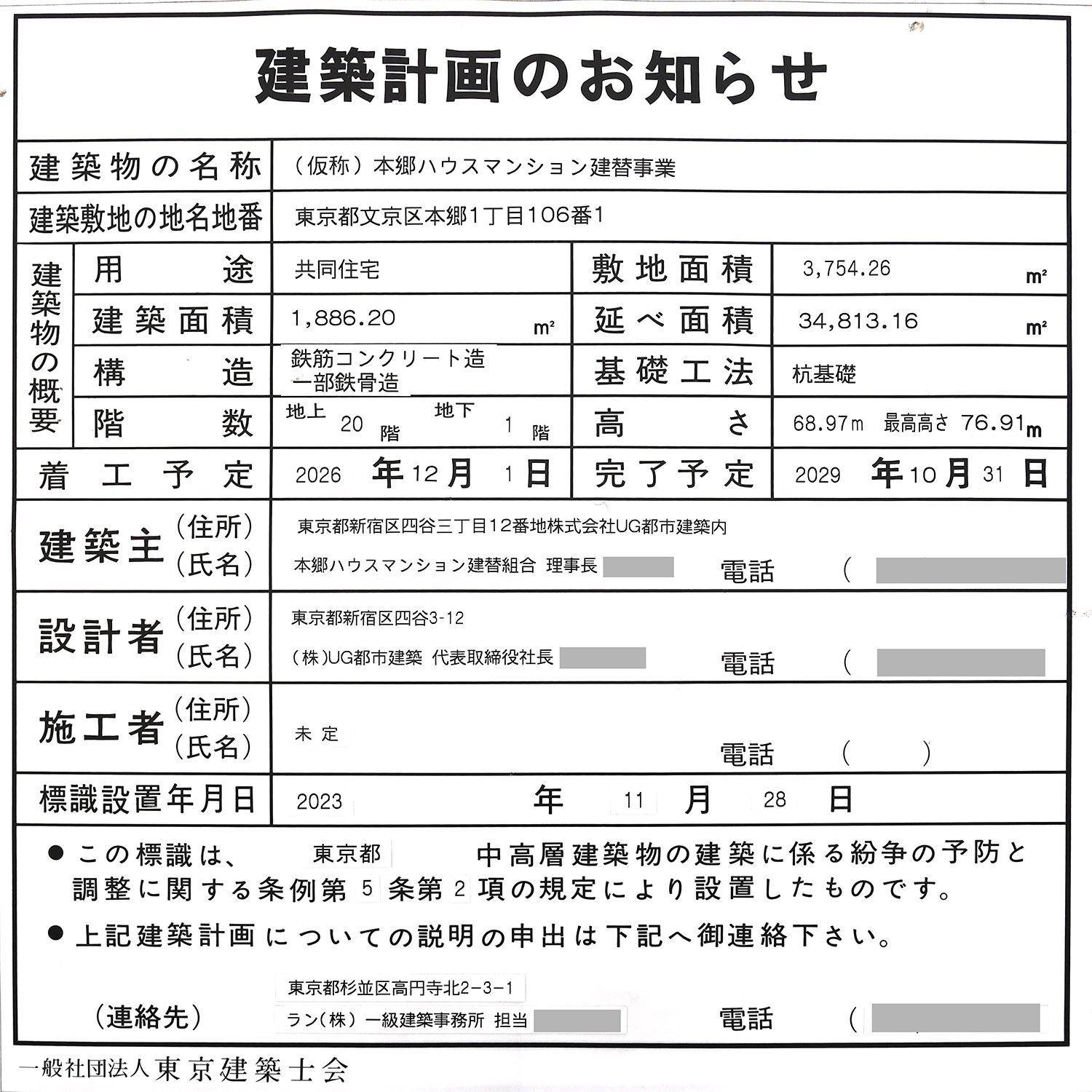 | 建築主 | 本郷ハウスマンション建替組合 |