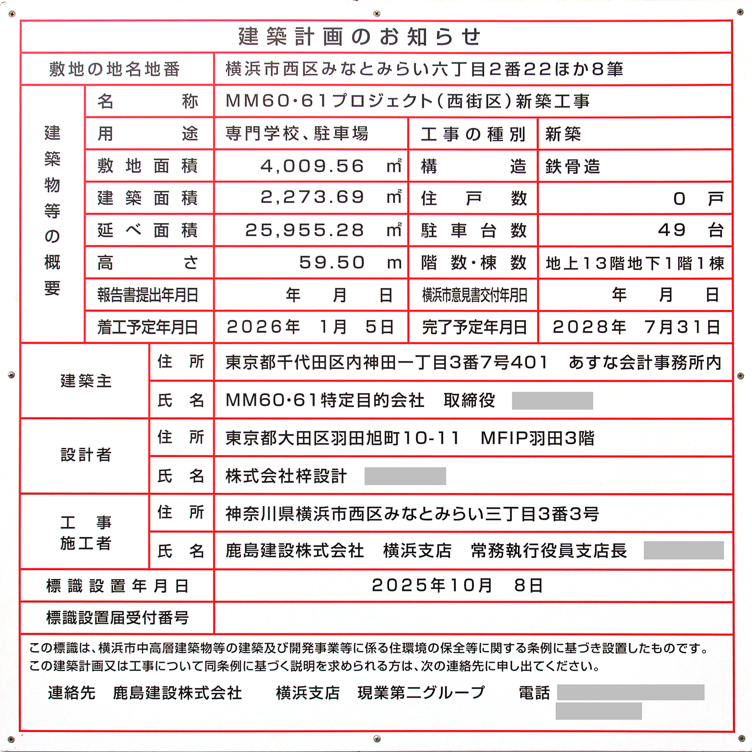 | 名 称 | MM60・61プロジェクト新築工事 | ||||