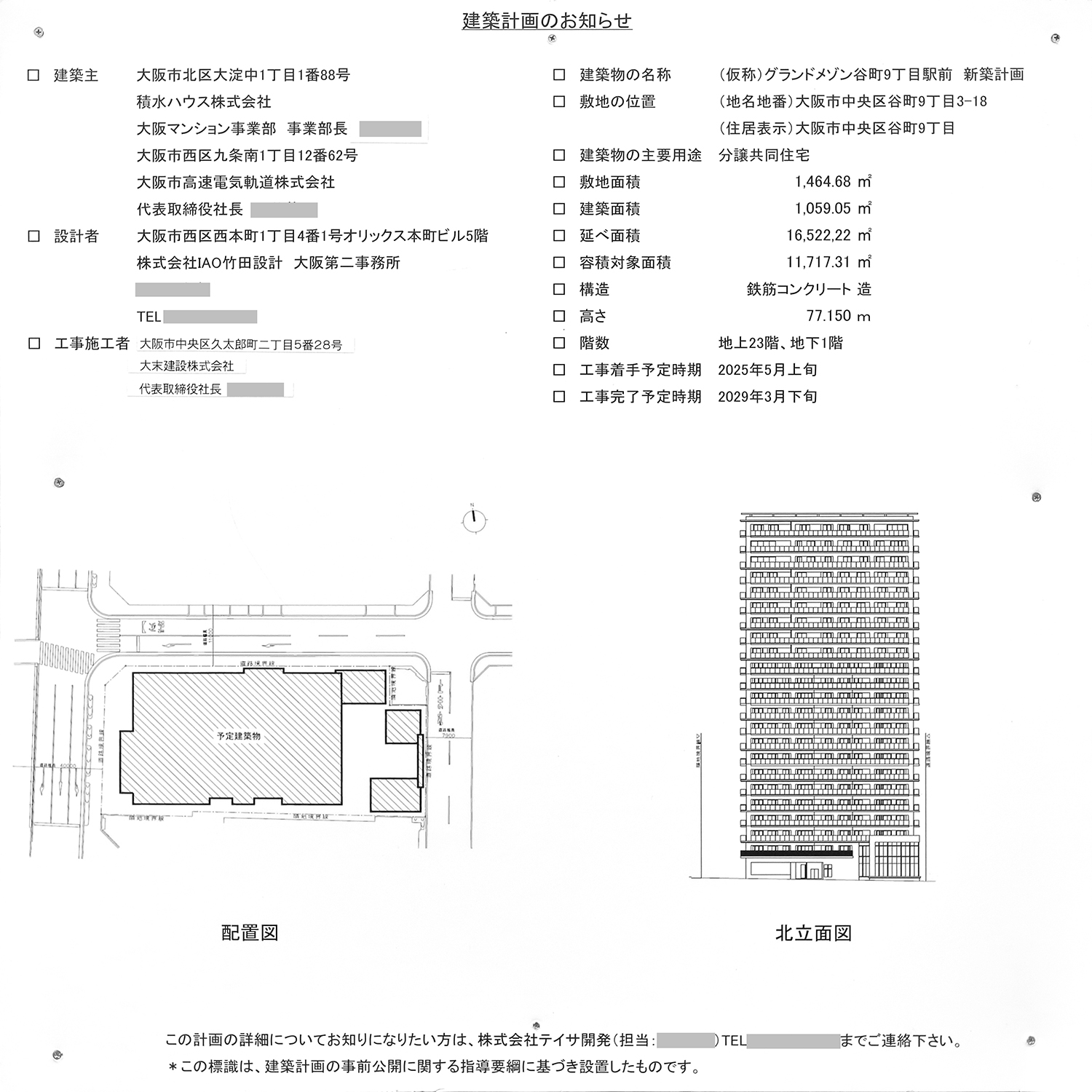 | 計画名 | (仮称)グランドメゾン谷町9丁目駅前新築計画 |