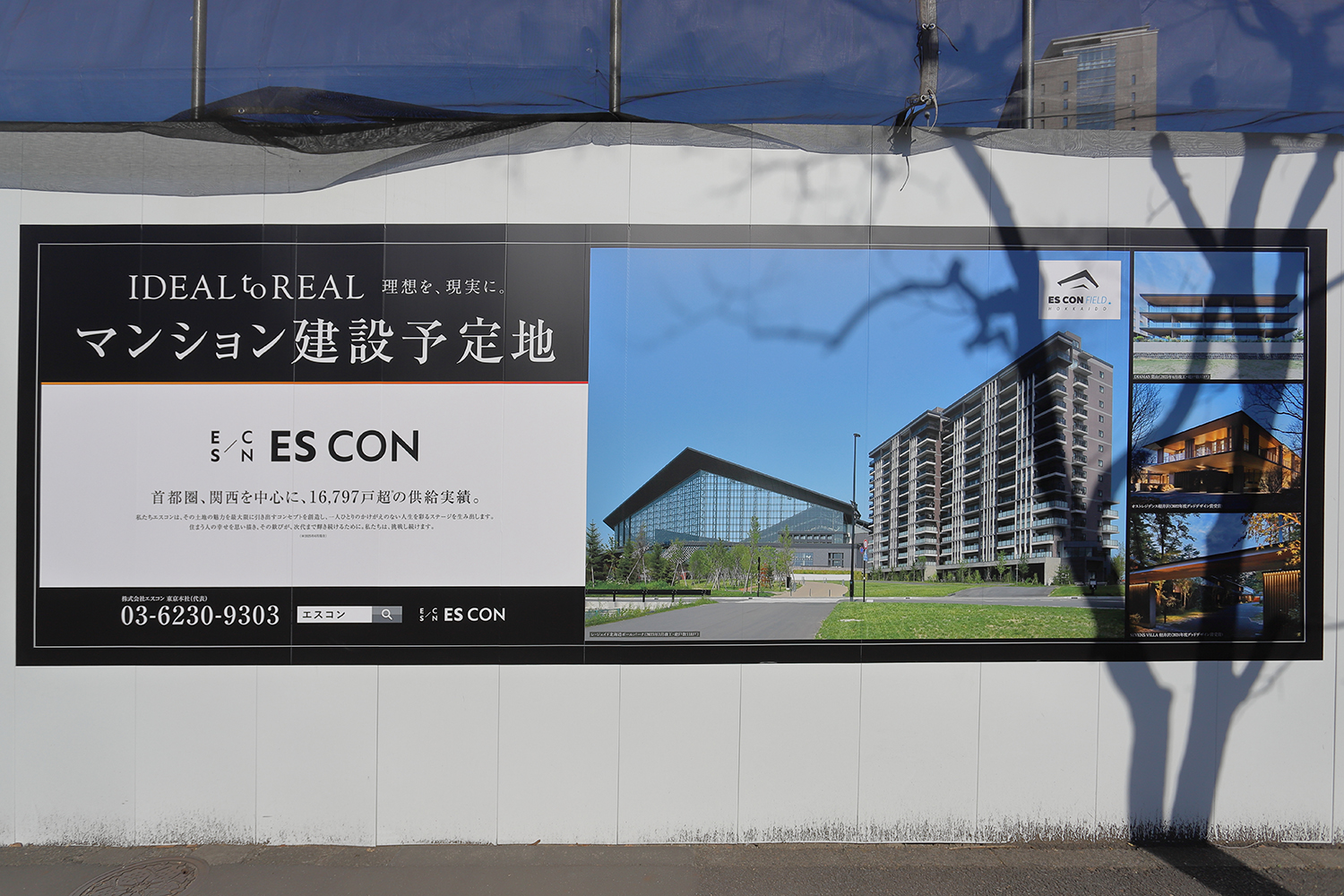 エスコンの高層マンションは2026年9月上旬に着工し、2031年3月中旬に竣工する予定です。 なお、中央の写真は北海道北広島市の「エスコンフィールドHOKKAIDO」及び「レ・ジェイド北海道ボールパーク」です。 写真クリックで拡大画像を表示。